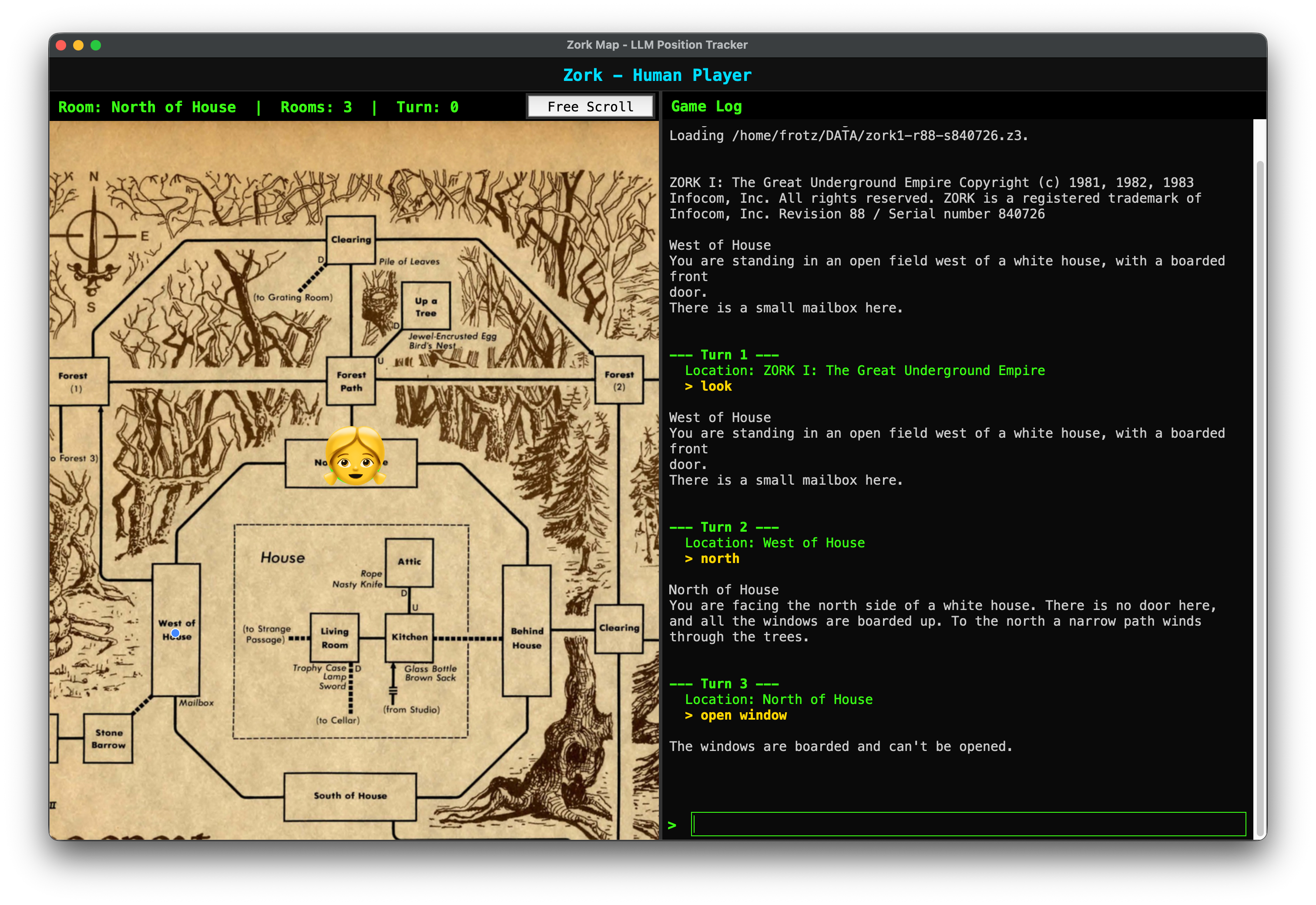 A core component of evaluating zork-bench itself was doing a human eval. So I made the harness work for humans as well. I don’t recommend playing zork this way in particular, it requires a lot of setup, and that setup can be annoying if you are a windows user. But, if you are willing, I would love for you to play and send me a copy of your play through to add to the human eval data set. Already I had a bunch of Recursers like those mentioned before and others like Canna Wen and Jack Heard.
